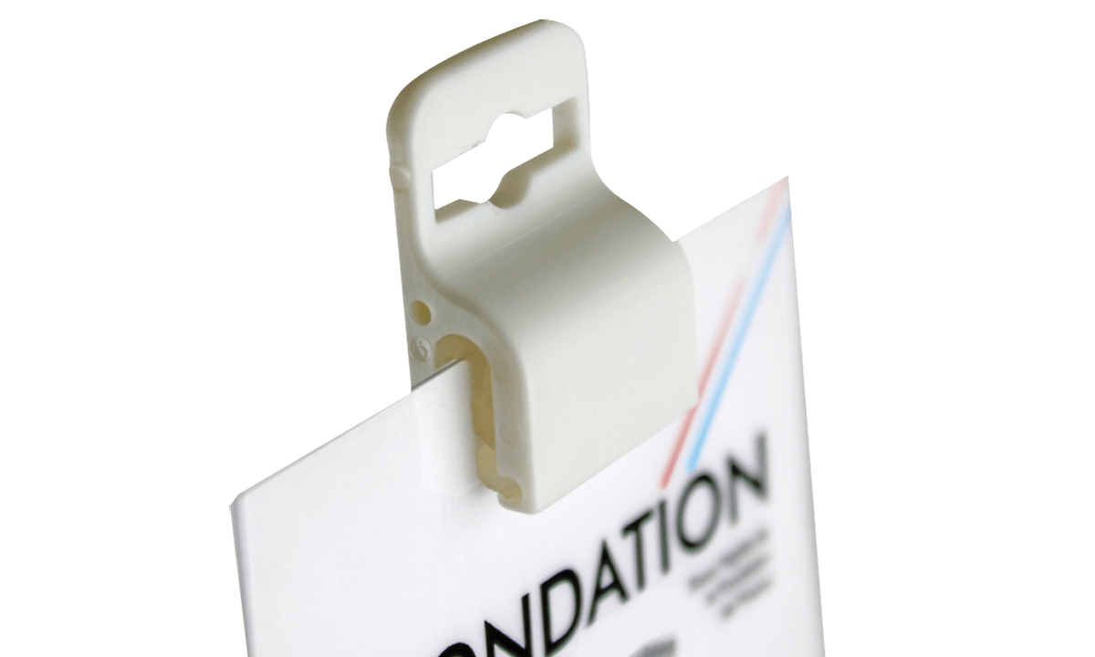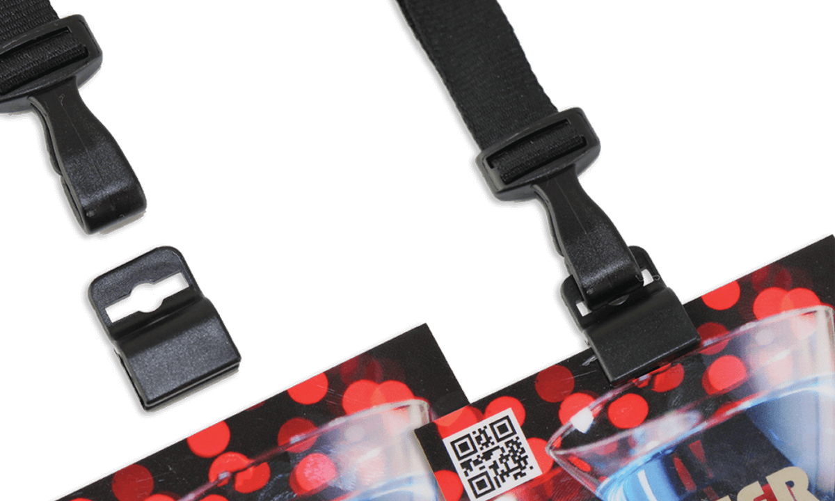 Plastic card clamp securely holds one 30mil (750mic : 0,76 mm) thick card, attaches to any lanyard, badge reel or strap clip. Made from a molded plastic outer piece with a silicone inner core.- No need for slot hole in ID card