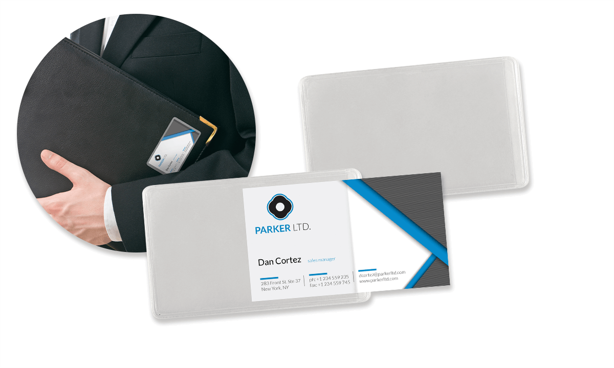 - This clear adhesive vinyl badge holder is great for attaching to proposals or brochures to keep contact information in front of clients and customers.