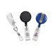 Round plastic badge reel with clear vinyl strap and nylon cord. Slide-type belt clip on back to easily attach to your clothing.