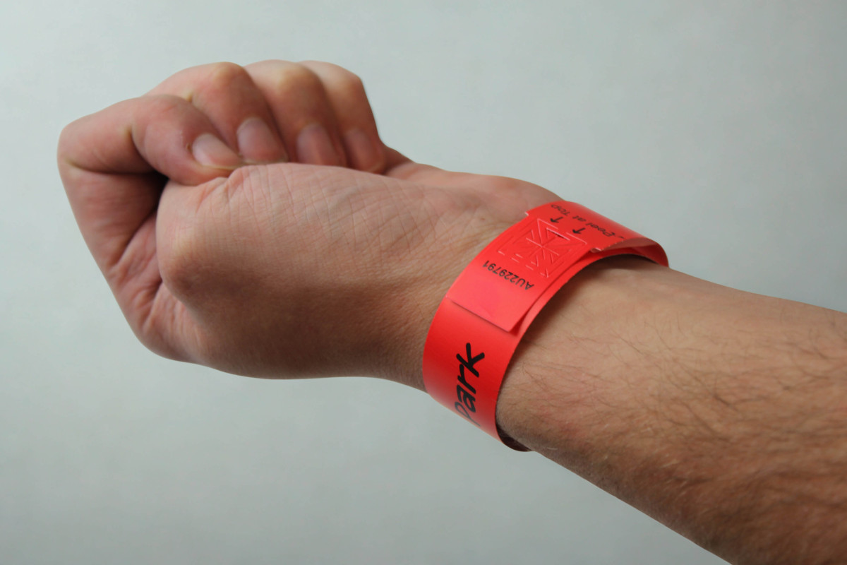 - Strong adhesive closure and unique tamper cuts cause wristbands to shred if tampered with