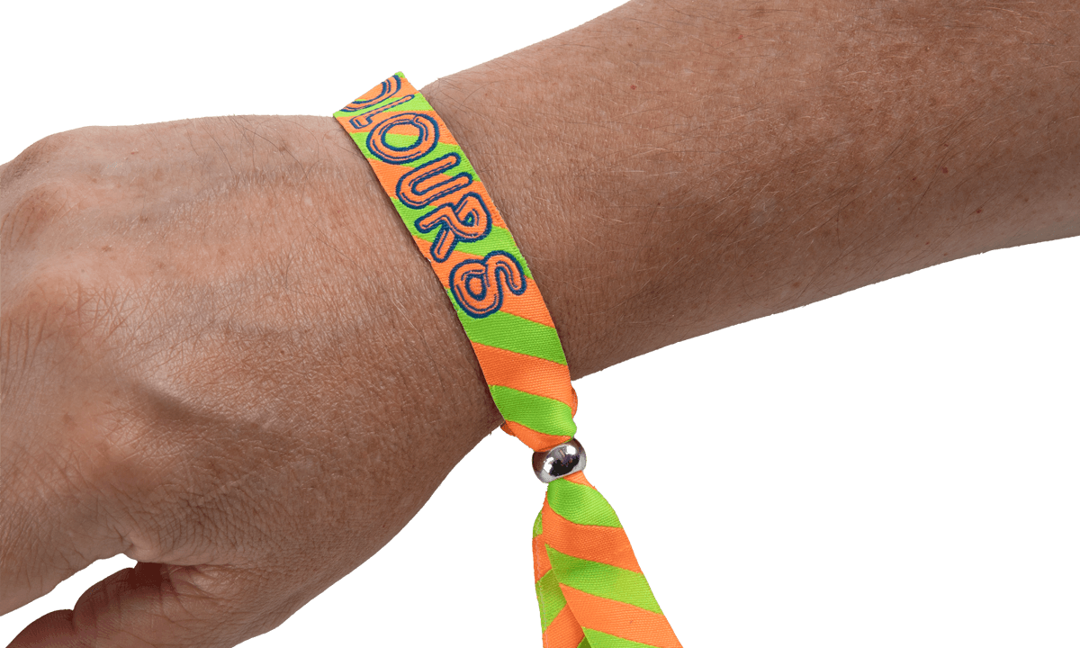 Las Vegas Woven wristbands can be personalised up to 8 colours. The special combination of nylon and cotton materials makes them soft and comfortable.