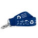 These lanyards are made from a 100% post-consumer recycled polyester content (r.P.E.T.) sourced from recycled plastic bottles.