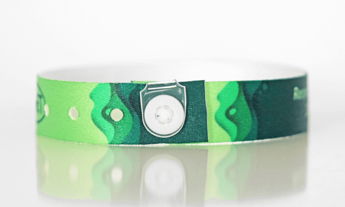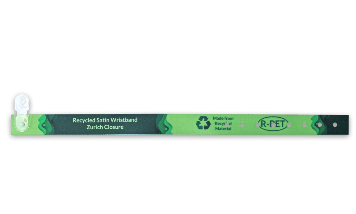 This wristband is made from a 100% post-consumer recycled polyester content (r. P. E. T.) sourced from recycled plastic bottles. The wristband also features our Zurich one-time use eco-friendly button clip closure. The snap button is made of 100% pre-consumer recycled plastic while the strap is made of EVA, an earth-friendly material that contains fewer.