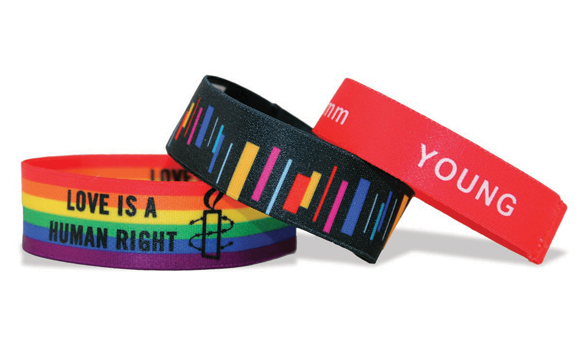 Made of ultra-comfortable, polyester material that stretches and adjusts to wrist size. Features custom full-colour dye-sublimation printing, transforming every guest's wrist into a mini billboard. Wristband is removable, re-usable, and water-proof, making it ideal for multi-day use.