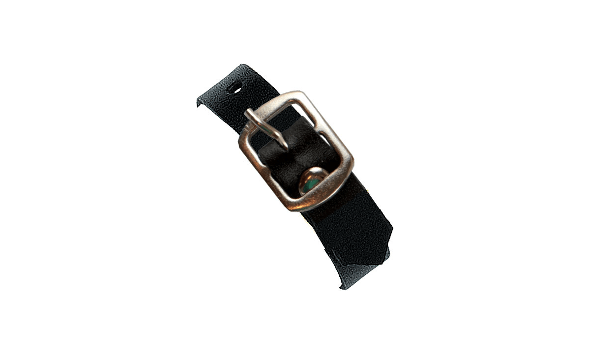 Leather luggage strap perfect to attach ID badge holder or luggage tags to your luggage such as a suitcase, briefcase or handbag. Made of black leather with a metal fastening buckle.