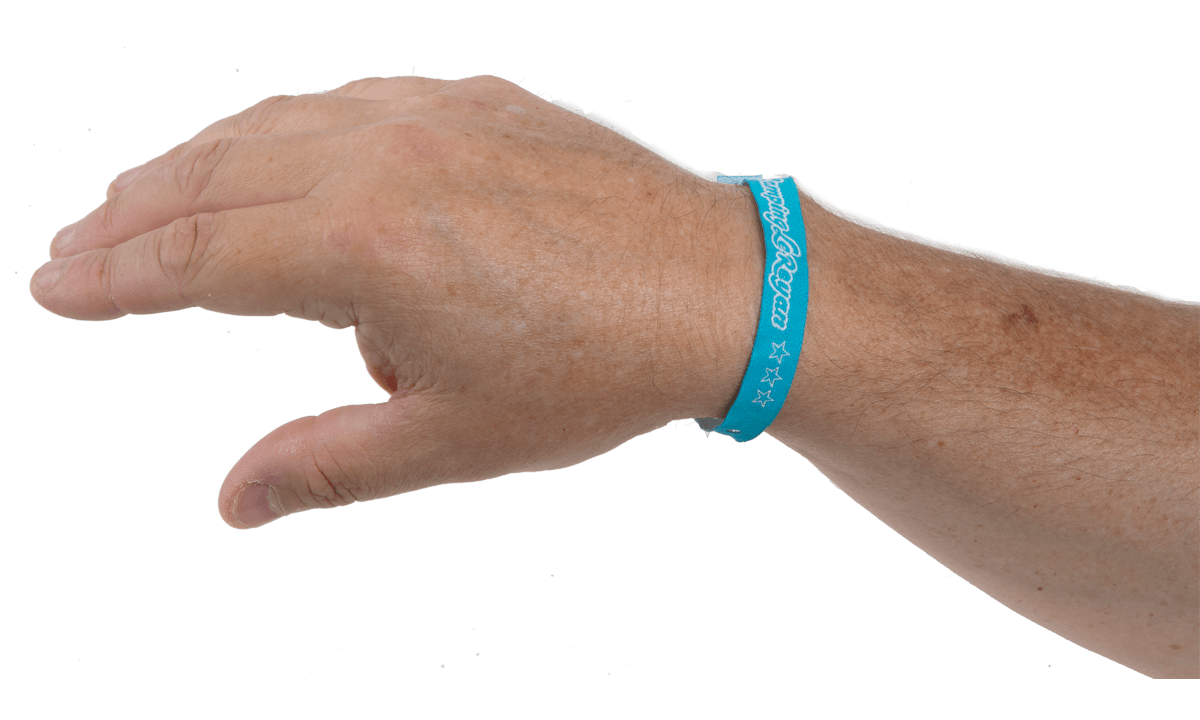 - Woven wristbands feature a single-locking snap for a one-time use