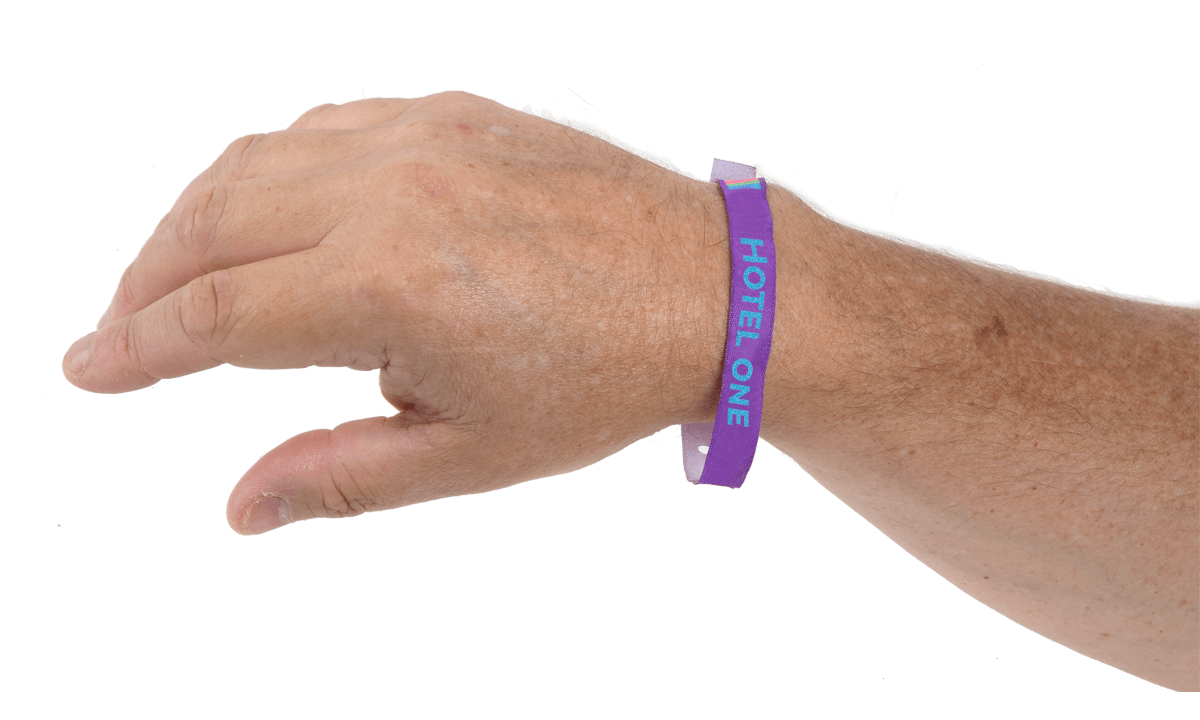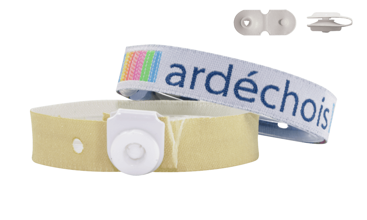 Thanks to the Vinyl button clip closure, St Tropez woven wristbands are very comfortable. These 10mm wristbands are the ideal solution for hotels and campings.